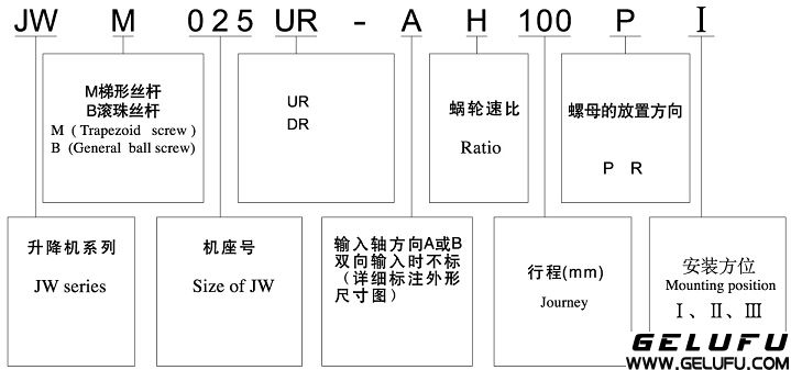 JWM螺旋升降機(jī)是一種基礎(chǔ)起重部件,具有結(jié)構(gòu)緊湊、體積小、重量輕、動(dòng)力源廣泛、無噪音、安裝方便、使用靈活、功能多、配套形式多、可靠性高、使用壽命長等許多 點(diǎn)??梢詥闻_(tái)或組合使用,能按一定程序準(zhǔn)確地控制調(diào)整提升或推進(jìn)的高度,可以用電動(dòng)機(jī)或其它動(dòng)力直接帶動(dòng),也可以手動(dòng)。它有不同的結(jié)構(gòu)形式和裝配形式,且提升高度可按用戶的要求定制。 JW絲桿升降機(jī)概述: JWM型(梯形絲桿型) 低速、低頻率 1.1 JWM型(梯形絲桿型)適用于低速、低頻率的場(chǎng)合,主要構(gòu)成部件為:精密梯形絲桿副與高精度蝸輪蝸桿副。 1.1.1經(jīng)濟(jì): 結(jié)構(gòu)緊湊、操作簡單、保養(yǎng)方便。 1.1.2速、低頻率: 主要用于負(fù)荷大、低速與無頻繁工作的場(chǎng)所。 1.1.3保持載重:梯形絲桿具有自動(dòng)工鎖定功能,即使沒有制動(dòng)裝置也可保持載重。 *在受到較大振動(dòng),沖擊載荷時(shí),偶爾會(huì)使自鎖功能失靈,此時(shí)則須外加制動(dòng)裝置。 1.2 JWB型(普通滾珠絲桿型) 高速 高頻率 JWB型(普通滾珠絲桿型),適用于高速,高頻率和高性能的裝置中,主要構(gòu)成部件為精密滾珠絲桿副與 高精度蝸輪蝸桿副。 1.2.1 效率高:用滾動(dòng)摩擦、提高了整機(jī)效率,只須很小的驅(qū)動(dòng)源,就可以產(chǎn)生很大的推動(dòng)力。 1.2.2 高速化:與梯形絲桿相比,速度有很大的提高,能輕松而高速的運(yùn)轉(zhuǎn)。 1.2.3 使用壽命長:采用高質(zhì)量的滾珠絲桿,使其工作壽命提高3倍以上。 注:(1)本身無自鎖功能,需外加加制動(dòng)裝置或選擇帶有制動(dòng)的驅(qū)動(dòng)源。 (2)JWH大螺距滾珠絲桿型另咨詢。 1.3 機(jī)器裝配形狀、特點(diǎn): 基本形式(UM,DS) 螺母轉(zhuǎn)動(dòng)絲桿上下移動(dòng),此為普通型升降機(jī)裝配 US:押上 DS:吊下 *請(qǐng)根據(jù)載荷方向、安裝方向來選擇合適的升降機(jī)(押上或吊下) *絲桿軸在升降時(shí),會(huì)產(chǎn)生旋轉(zhuǎn)力,所以必須做好防止旋轉(zhuǎn)措施。 止旋構(gòu)造(UM,DM) UM:押上 DM:吊下 適用于頂端無連接下運(yùn)轉(zhuǎn)或因滑輪而卷拉著繩索等又不能實(shí)現(xiàn)防止旋轉(zhuǎn)的情況 請(qǐng)根據(jù)載荷方向、安裝方向來選合適的升降機(jī)(UM 或DM) 活動(dòng)螺母構(gòu)造(UR,DR) 一般情況下,升降機(jī)必須具有因絲桿軸的升降而產(chǎn)生的行程和絲桿罩所需的空間,若想在有限的空 間內(nèi)增長行程時(shí),使用此活動(dòng)螺母構(gòu)造非常適應(yīng)(絲桿軸旋轉(zhuǎn),活動(dòng)螺母移動(dòng))。絲桿軸頂端為圓柱形 ,所以在長行程時(shí),在軸端采用支撐方式,可以得到很好的傳動(dòng)效果。 UR:押上 DR:吊下 請(qǐng)根據(jù)載荷方向,安裝方向來選擇合適的長降機(jī)(押上或吊下) 注:選型和型號(hào)表示方法中,還需注明螺母的放置方向。 動(dòng)機(jī)或 其他動(dòng)力直接帶動(dòng),也可以手動(dòng)。它有不同的結(jié)構(gòu)形式和裝配形式,且提升高度可按用戶的要求定制。 。該裝置可以自鎖。 |