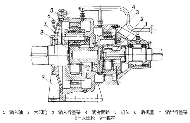 減速機采用漸開線行星齒輪傳動,合理利用內(nèi)、外嚙合、功率分流,