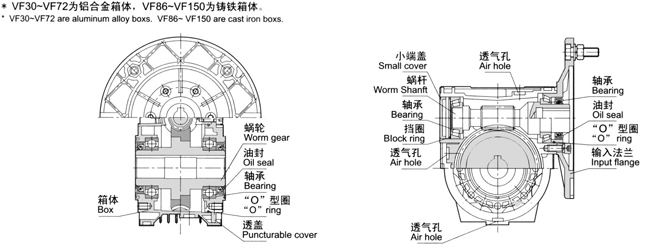 4.結(jié)構(gòu)形式:有電機直聯(lián)和軸輸入、實心軸和空心軸輸出方式,有底腳、軸裝和法蘭安裝等形式|