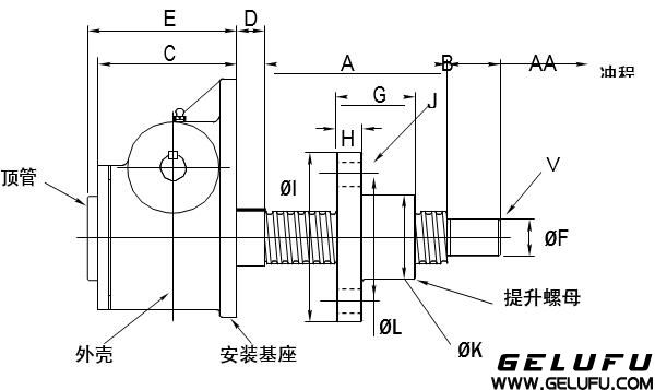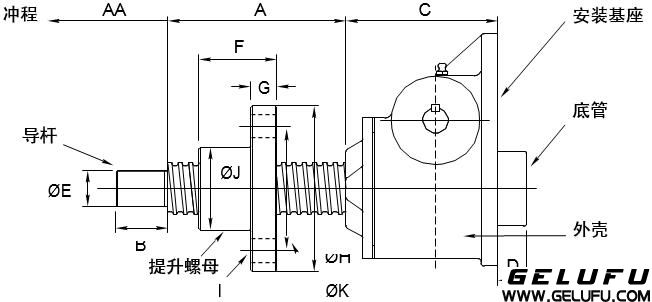 螺紋端和法蘭端的升降機(jī),直立式和倒立式收縮尺寸相同。 螺母運(yùn)動(dòng)式升降機(jī)(參考 2.3)的外殼尺寸與絲桿運(yùn)動(dòng)式的升降機(jī)相同。 尺寸如有變更,恕不另行通知。