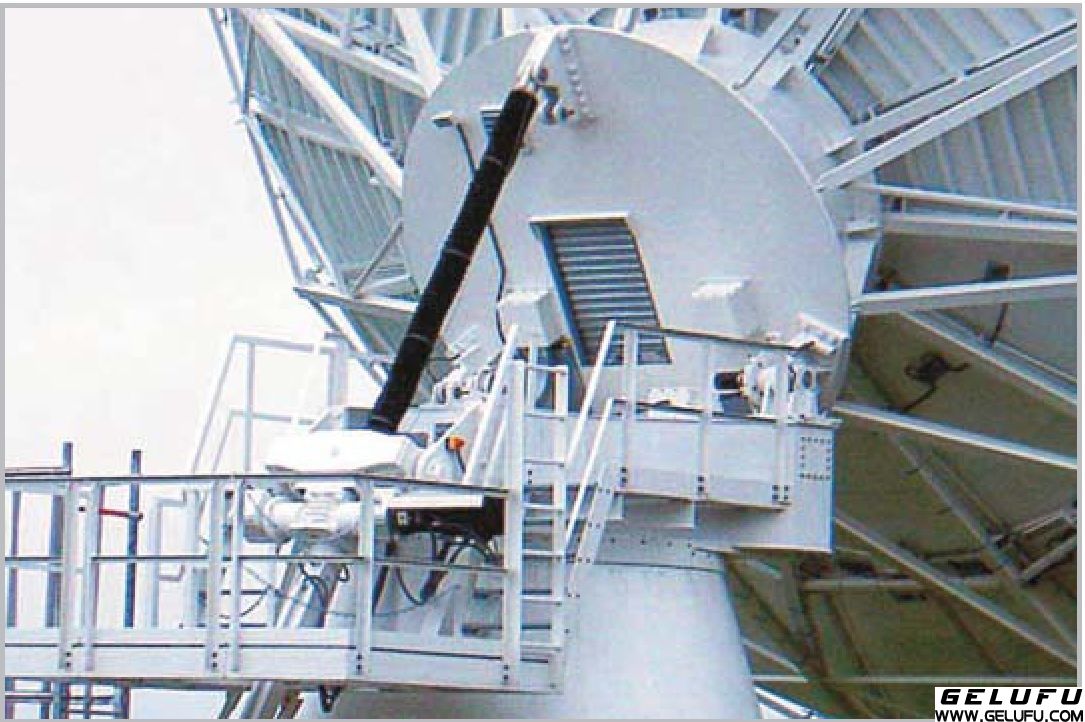 高性能蝸輪絲杠升降機(jī),為11.1m天線實(shí)現(xiàn)俯仰運(yùn) 動(dòng)而設(shè)計(jì)的特殊結(jié)構(gòu),工作溫度0 °C到90°C。