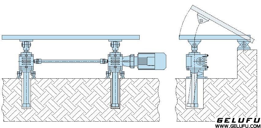 旋轉(zhuǎn)結(jié)構(gòu)剪叉式升降平臺(tái)高性能蝸輪絲杠升降機(jī),結(jié)構(gòu)型式1,通過(guò)連接軸實(shí)現(xiàn)串聯(lián)式同。