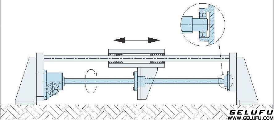 壓縮載荷絲杠,有無(wú)附加絲杠導(dǎo)向,根據(jù)歐拉狀態(tài)in及絲杠臨界轉(zhuǎn)速確定絲杠尺寸 設(shè)計(jì):結(jié)構(gòu)形式2 絲杠作旋轉(zhuǎn)運(yùn)動(dòng),螺母作軸向運(yùn)動(dòng)