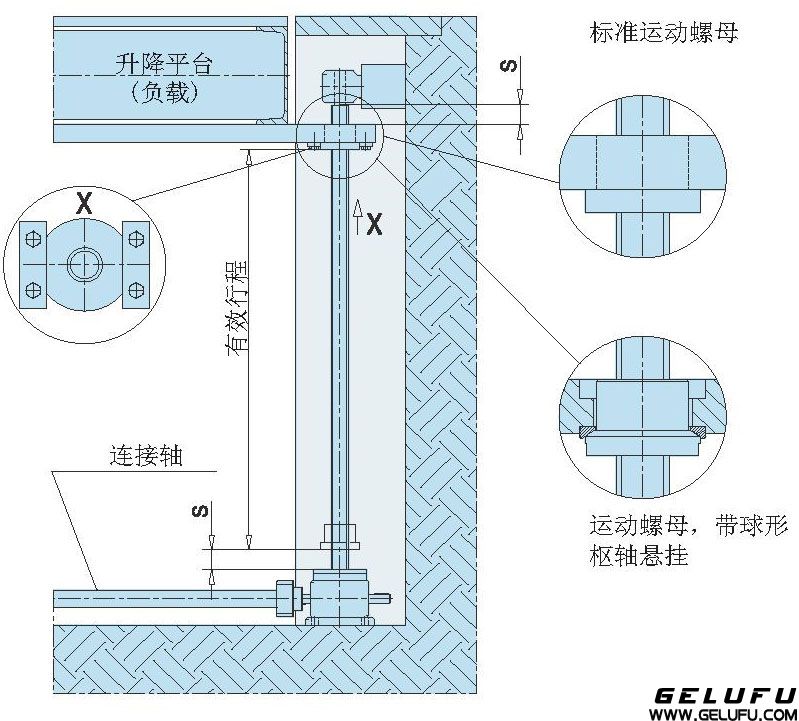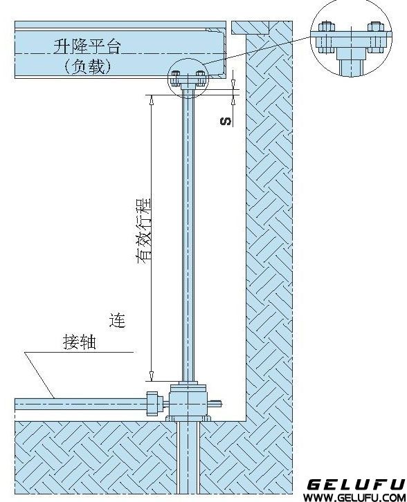 適用于重載長(zhǎng)絲杠拉伸載荷設(shè)計(jì):結(jié)構(gòu)形式1 裝有爬升絲杠(無(wú)保護(hù)管)