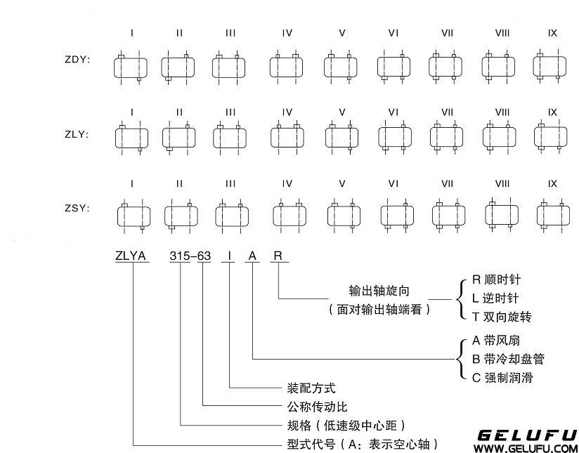 兩級(jí):ZLY112、ZLY125、ZLY140、ZLY160、ZLY180、ZLY200、ZLY224、ZLY250、ZLY280、ZLY315、ZLY355、ZLY400、ZLY450、 ZLY500、ZLY560、ZLY630、ZLY710;