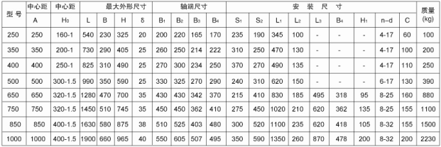 ZQ型減速機(jī)的外形、軸端和安裝尺寸表格