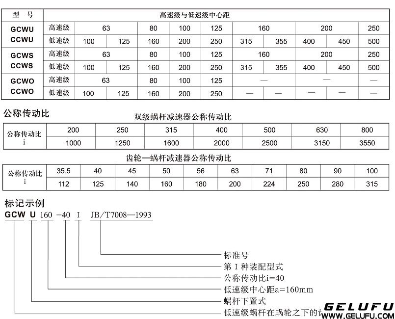 (6)GCWO型—低速級蝸桿在蝸輪之上的齒輪—蝸桿減速機。