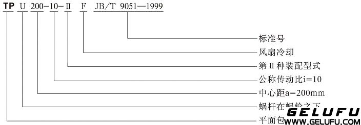 包絡(luò)環(huán)面蝸桿減速器: 減速器 TPU200 - 10 - 2F JB/T 9051—1999