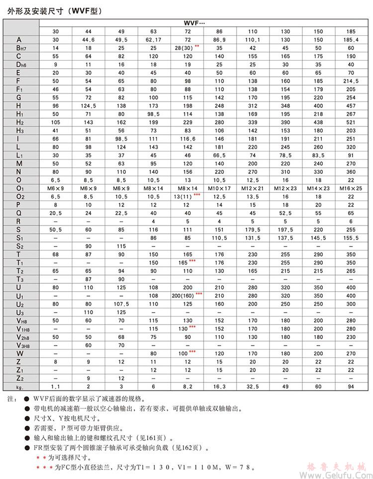 WVF減速機(jī)選型資料及安裝尺寸圖