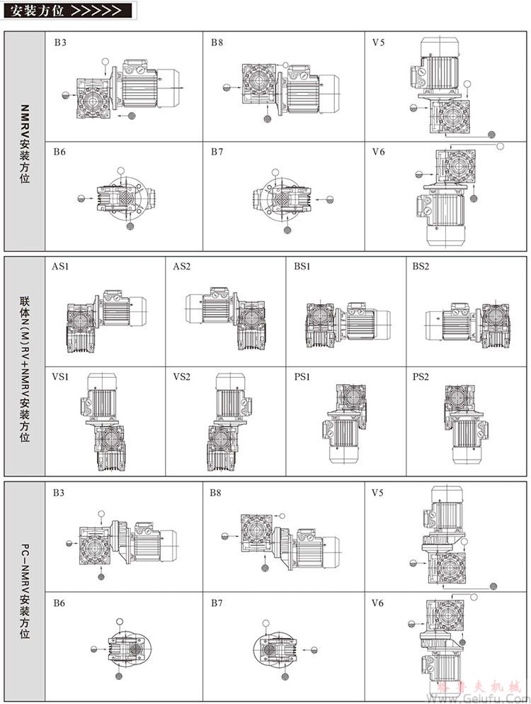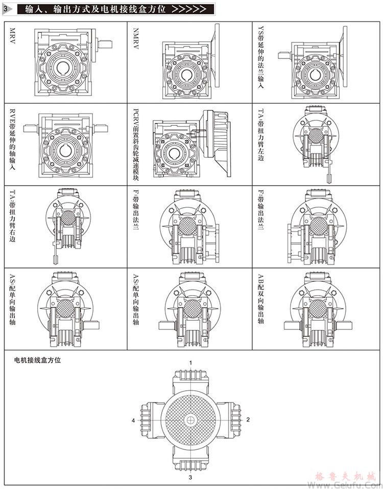 RV鋁合金微型蝸桿減速機(jī)輸入輸出方式及電機(jī)接線盒方位
