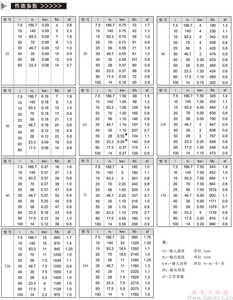 3.減速機(jī)單機(jī)速比有7.5、10、15、20、25、30、40、50、60、80、100