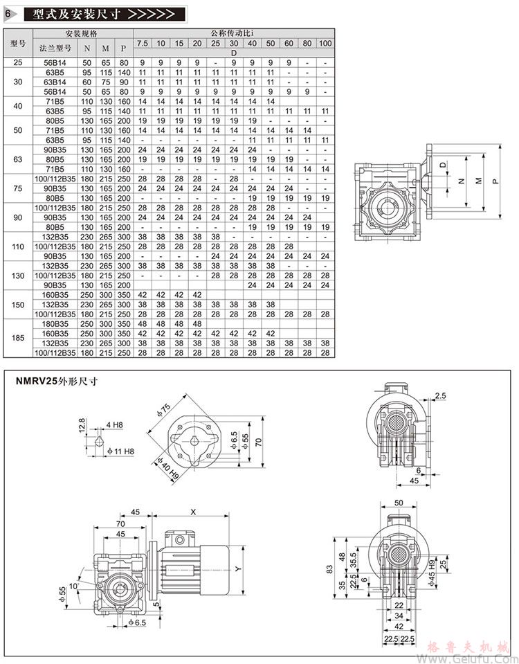 NMR鋁合金微型蝸桿減速機(jī)型號、中心距、速比Q/JF01-1999