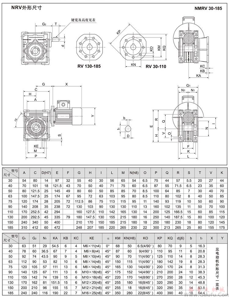 RV蝸輪減速機(jī)國內(nèi)外型號對照