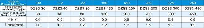 制動器制動力矩、正常工作氣隙δ、 大工作氣隙δ max見下表