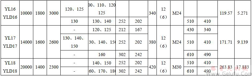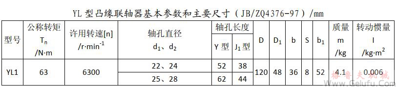 YL型——基本型,YLD型——有對中榫型。YL型結(jié)構(gòu)、YLD型結(jié)構(gòu)見下圖,基本參數(shù)和主要尺寸見下表。