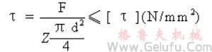 [τ]——螺栓材料的許用剪應(yīng)力,載荷穩(wěn)定時,可取[τ]=0.4σS,載荷變化時,可取