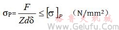 [σ]P——許用擠壓應(yīng)力,N/mm2,載荷穩(wěn)定時,對鋼可取[σ]P=(0.8~1)σS,對鑄鐵可取[σ]P=0.8[σ]b;載荷變化時,對鋼可取[σ]P=(0.5~0.65)[σ]S;對鑄鐵可取