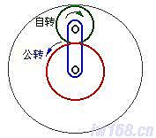有定必有動(dòng),對(duì)應(yīng)地,有一類(lèi)不那么為人熟知的稱為"行星齒輪"的齒輪,它們的轉(zhuǎn)動(dòng)軸線是不固定的,而是安裝在一個(gè)可以轉(zhuǎn)動(dòng)的支架(藍(lán)色)上(圖中黑色部分是殼體,黃色表示軸承)。行星齒輪(綠色)除了能象定軸齒輪那樣圍繞著自己的轉(zhuǎn)動(dòng)軸(B-B)轉(zhuǎn)動(dòng)之外,它們的轉(zhuǎn)動(dòng)軸還隨著藍(lán)色的支架(稱為行星架)繞其它齒輪的軸線(A-A)轉(zhuǎn)動(dòng)。繞自己軸線的轉(zhuǎn)動(dòng)稱為"自轉(zhuǎn)",繞其它齒輪軸線的轉(zhuǎn)動(dòng)稱為"公轉(zhuǎn)",就象太陽(yáng)系中的行星那樣,因此得名“行星齒輪”。