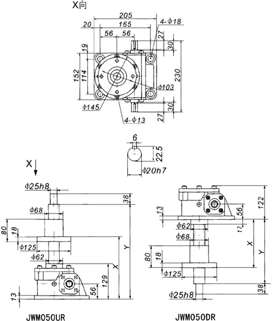JWM050梯形絲杠升降機(jī)外形尺寸表