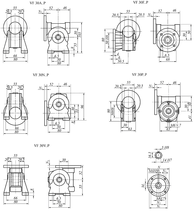 VF蝸輪蝸桿減速機外形及安裝尺寸