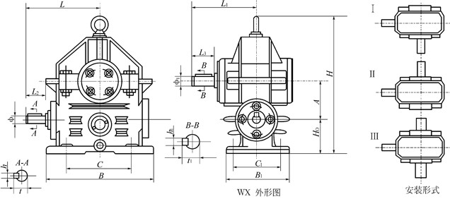 WX43、WX53、WX60、WX80、WX100、WX120、WX150、WX180、WX210蝸輪減速機安裝尺寸
