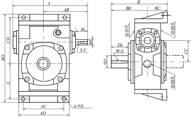 WL萬用型蝸輪減速機(jī)安裝尺寸圖