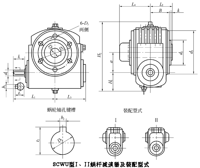 SCWU63、SCWU80、SCWU100、型減速機I、II裝配型式主要尺寸JB/T6387-1992