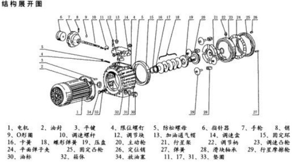 4、 無 級 變 速 機 出 廠 時 , 調 速 限 位 螺 釘 已 經 調 整 在 極 限 位 置 , 不 得 任 意 調 整 , 以 免 損 壞 零
