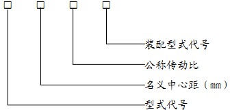 減速機的型號由型式代號,名義中心距(末級中心距),公稱傳動比,裝配型式代號組成。