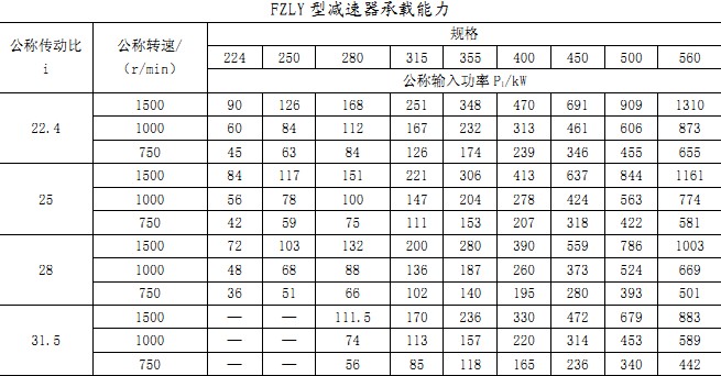 ①FZLY型減速機選用時,首先應(yīng)滿足機械強度的要求。根據(jù)工作機械所需功率,考慮工