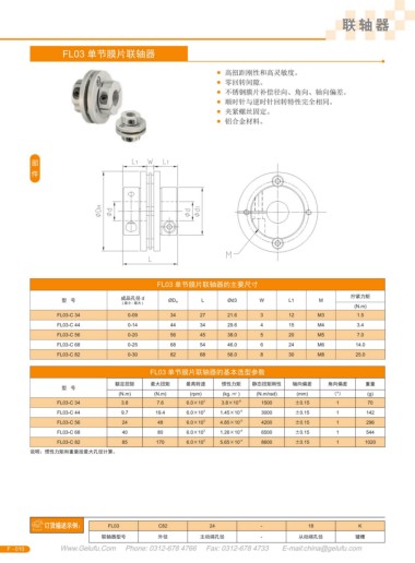 FL03 單節(jié)膜片聯(lián)軸器的基本選型參數(shù)
