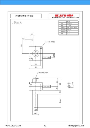 POWER BASE 尺寸圖 參數(shù)表 型號(hào) IP500-1S 類型 標(biāo)準(zhǔn) 負(fù)載重量 Max. 500Kg / 4 pcs 最大行程 600 mm 齒輪組件 M 1.5 比例 1 : 1 www.xuexigo.cn 12 china@gelufu.com