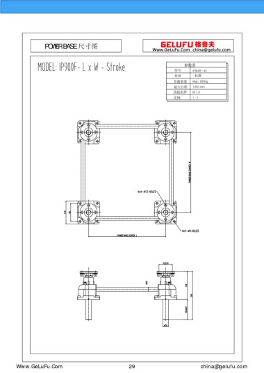 POWER BASE 尺寸圖 參數(shù)表 型號(hào) IP900F-4S 類型 標(biāo)準(zhǔn) 負(fù)載重量 Max. 900Kg 最大行程 1300 mm 齒輪組件 M 1.5 比例 1 : 1 www.xuexigo.cn 29 china@gelufu.com