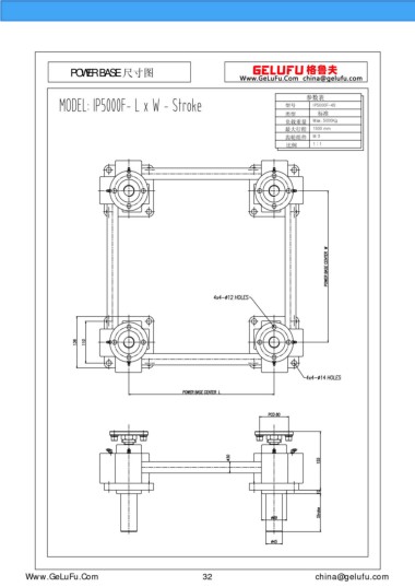 POWER BASE 尺寸圖 參數(shù)表 型號(hào) IP5000F-4S 類型 標(biāo)準(zhǔn) 負(fù)載重量 Max. 5000Kg 最大行程 1500 mm 齒輪組件 M 3 比例 1 : 1 www.xuexigo.cn 32 china@gelufu.com